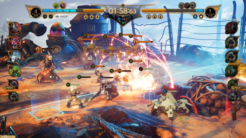 ゲーム中はATBゲージを消費してユニットを配置し、自動戦闘が行われる中で敵の陣地まで進軍しながら相手の拠点を落とすというもの。